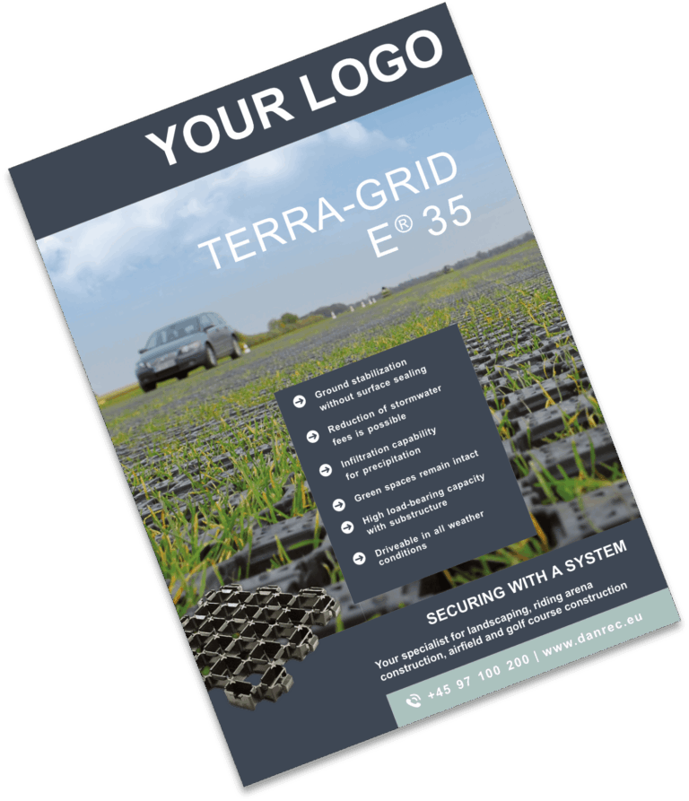 Chez DANREC, nous souhaitons vous faciliter encore davantage la vente de Terra-Grid E® 35 – notre solution solide et durable pour le renforcement des sols et des surfaces engazonnées, utilisée pour créer des surfaces stables et respectueuses de l’environnement, qu’il s’agisse de parkings, de chemins, de voies d’accès pour les pompiers ou encore de pistes d’atterrissage.